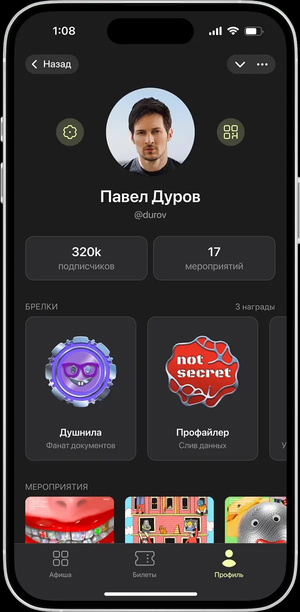 Для проверки билетов мы сделали приложение Backstage-Mini в Telegram