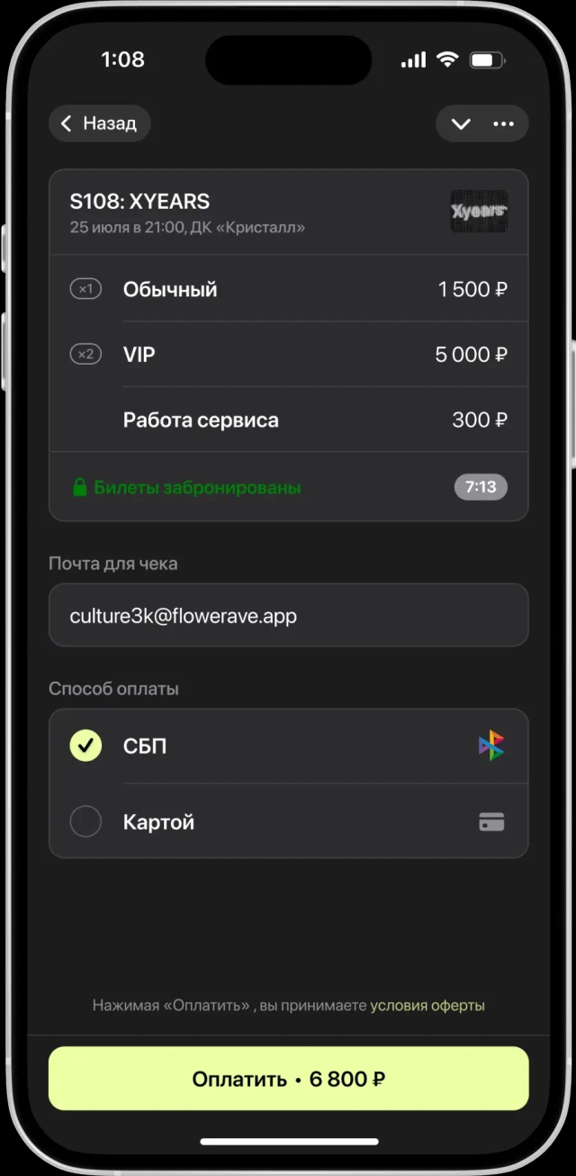 Супер! Осталось только прийти на мероприятие и показать свой билет прямо из приложения Flowerave App в Telegram. Помни, что скриншот билета не будет работать, нужно показывать его в реальном времени, так как QR-код постоянно обновляется в целях безопасности